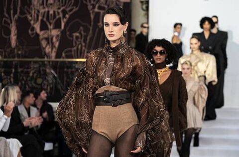 Grey, taupe, mocha and black made up the prevailing palette, lending a refined restraint to silhouettes that carried historical resonance.