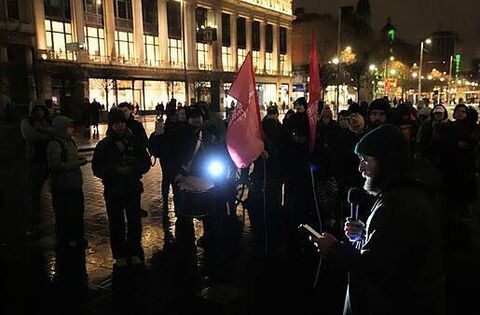 People Before Profit organised the protest at the Spire to call on the government to drop the traditional White House visit for St Patrick’s Day, and to express solidarity with the strikes against President Donald Trump in the US.