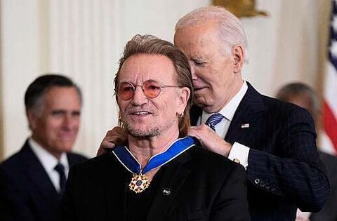 US President Joe Biden presented the highest American civilian honour to Bono, real name Paul David Hewson, on Saturday at the White House along with a total of 19 people from across politics, sports, entertainment and other fields.