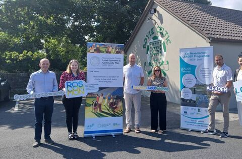 Pictured are Niall O'Donohoe (Boyle Celtic FC), Sharon Shally (Roscommon County Council), Aaron O'Connor (Boyle Celtic FC), Leanne Connolly (Boyle Celtic FC), Tomás Beades (Roscommon LEADER Partnership), and Cathriona MacCarthy (Roscommon County Council) after the announcement that Boyle Celtic FC is developing a dedicated multi-purpose community function room which is part of ‘The Celtic Community HUB’ following the approval of €200,000 in LEADER funding.