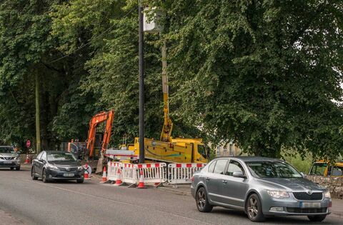 There’s a digger on site, workmen aloft and traffic backups in both directions.
