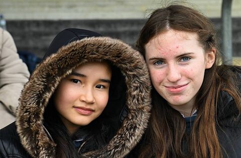 Masuma Adeli and Jane Cunnane supporting Clonfert College during the school's All-Ireland hurling semi-final against St. Joseph's College Borrisoleigh in Banagher on Saturday last. Pic: Gerard O'Loughlin