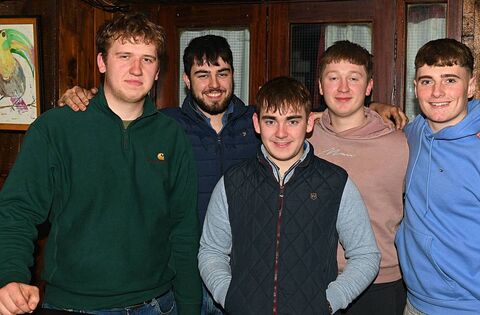 Jack Caulfield, Mark Higgins, Charlie Cryan, Joey Kilkenny and Dylan Keane, pictured at a draw launch in Garvey’s of Ballintubber last weekend. Pic: Gerard O’Loughlin