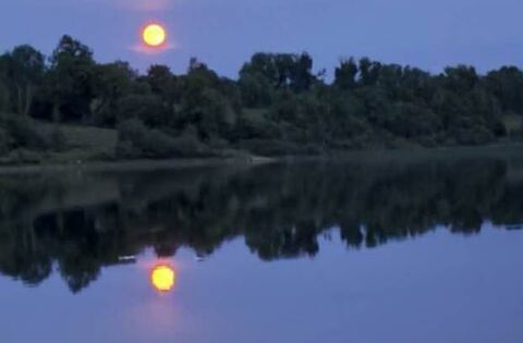Strawberry Moon captured over lovely Loughnablathy, Kilcloghan, Elphin. Pic: courtesy of Frank Tiernan