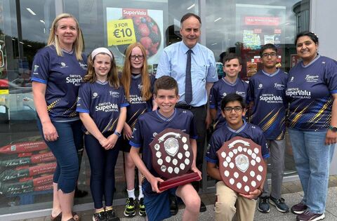 The U-13 Community Games chess team is made up of six local children from three local schools: Cloonakilla NS; Cornafulla NS; and Summerhill NS. They are pictured here at SuperValu Monksland where Tim Dolan presented the chess team with their jerseys.