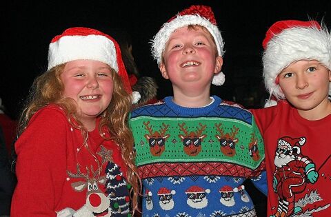 Ellie Ann Beades, Alex Connaughton and Daniel Grimes, Knockcroghery, pictured at the switching on of the Christmas lights in Knockcroghery. Pic. Gerard O’Loughlin