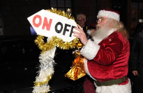 Santa Claus turning on Christmas lights in Ballaghaderreen on Sunday last. Pic: Liam Reynolds