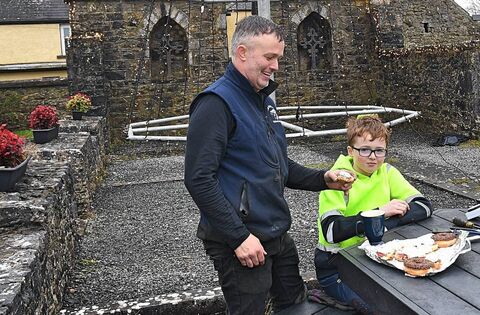 Picnic time: Simon Moran with his son Simon, pictured at the erection of the Christmas Lights at Rahara on Saturday. Pic. Gerard O’Loughlin