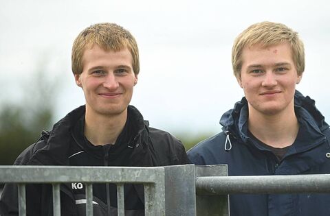 Nicodemus and Demenico Adams supporting Shannon Gaels during their intermediate football championship quarter-final against Pádraig Pearses in Creggs on Saturday last. Pic. Gerard O'Loughlin