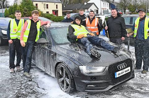 Catherine Gaffey has her car washed by Paddy Connaughton at a car wash in Knockcroghery village as a fundraiser for St. Dominic’s GAA Club. Pic. Gerard O’Loughlin