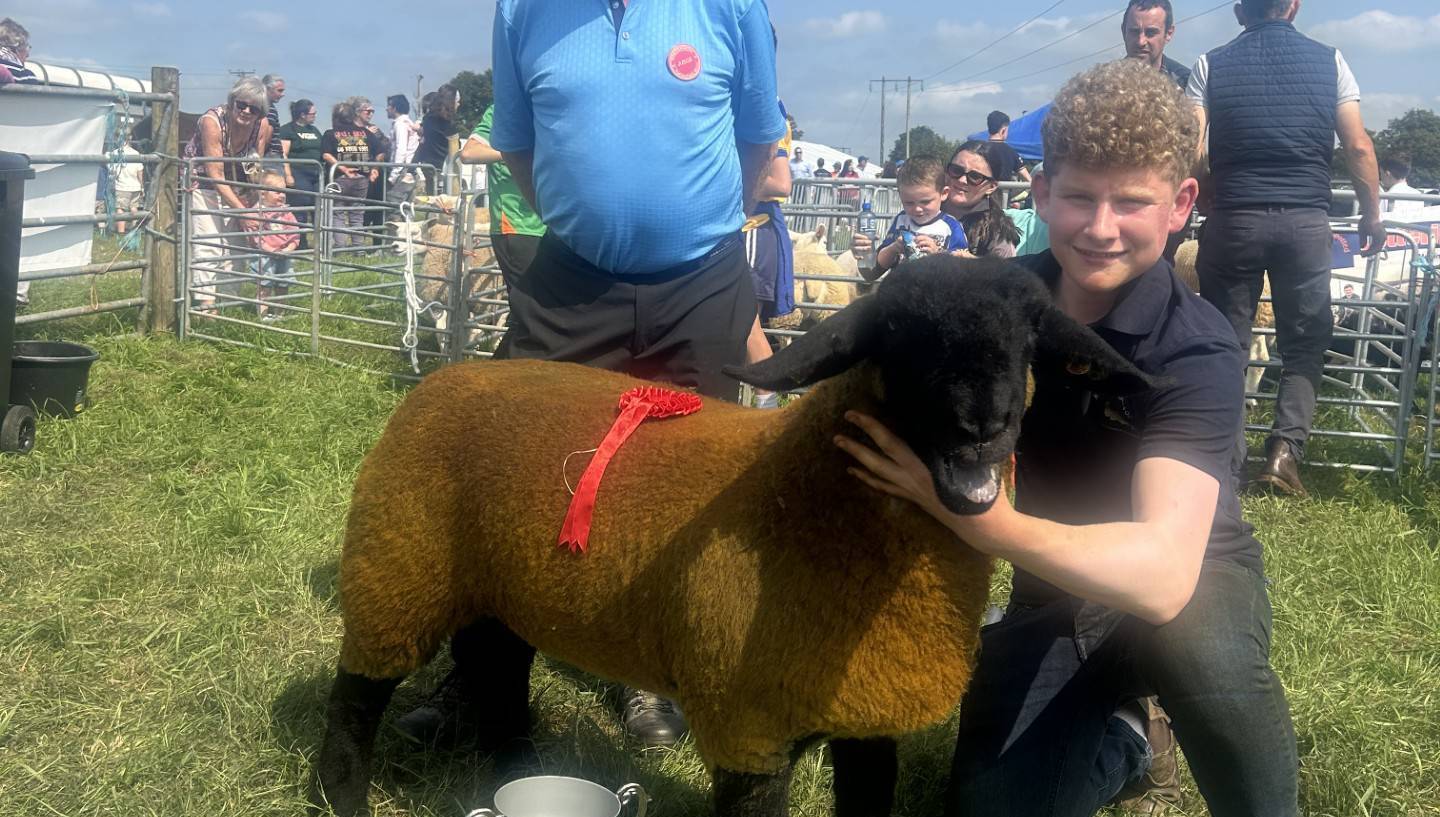 Ben Whyte with the Champion Suffolk of the Roscommon Agricultural Show.