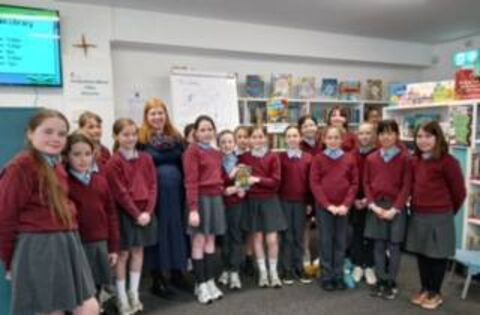 Pupils from St. Mary’s NS, Strokestown had great fun at the Spring Into Storytime event at Strokestown Library. They are pictured here after enjoying a storytime reading with children’s author, Méabh McDonnell who read from her new book, ‘Into the Witchwood’.