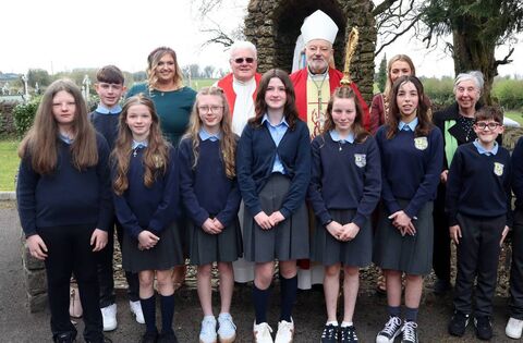 Bishop Kevin Doran and Fr Micheal Donnelly, with teachers and pupils from The Don NS following a Confirmation ceremony. Pic: Liam Reynolds