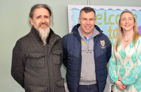 MEP Luke ‘Ming’ Flanagan, Dermot Lyons and principal Jacinta Ní Chonghaile at the opening of a new STEM Room at St. Anne’s NS, Castlerea on Friday last. Pic: Liam Reynolds