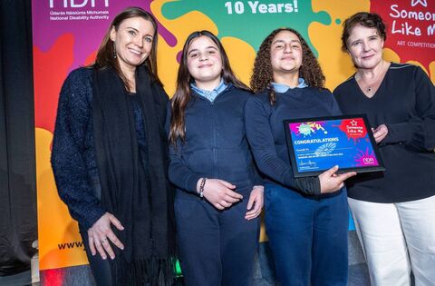 Cloverhill National School was presented with its junior county winner’s award at this year’s Someone Like Me Art Competition national awards ceremony. The presentation was made by director of the National Disability Authority, Dr Aideen Hartney at an awards ceremony held at Dublin City Hall which saw teachers and pupils from 52 primary schools across Ireland gather to celebrate achieving county awards. Pic: Finbarr O’Rourke