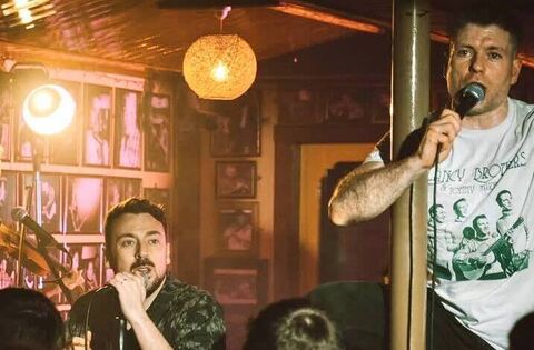 As night fell the 2 Johnnies went indoors and delivered a charged gig to a packed Spells Bar.