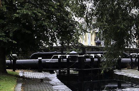 The bridge in question, Binns Bridge on Drumcondra Road, lies a short walk from Croke Park, between Le Petit Breton and the Royal Canal Way.