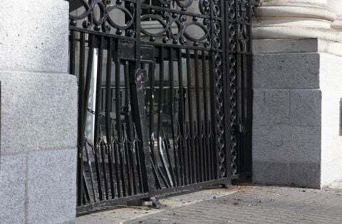 "Severe damage was caused to the gate, structure and fittings, and as a result, an entrance to Government Buildings was completely breached and left wide open," the garda said.