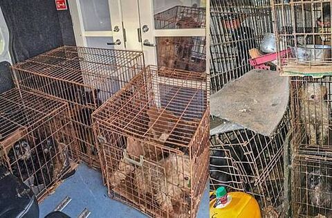 Gardaí said the dogs were being kept in shocking conditions, confined to rusted crates and living in their own filth.