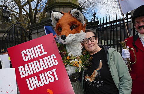 Another protester, who did not want to be named, wore a traditional red fox-hunting blazer and carried a horn.