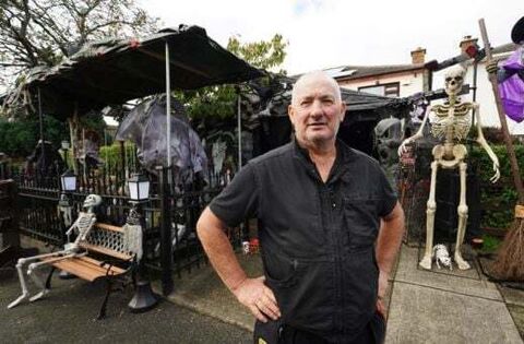 Electrician Ken Carraher continues preparations on his Halloween House of Horrors in Killiney, Dublin