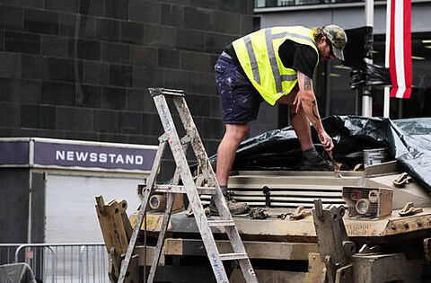 Actors ran away from what appeared to be an armoured military vehicle in Glasgow.