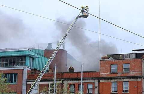 Firefighters are continuing to dampen down a building fire on Eden Quay in Dublin city.