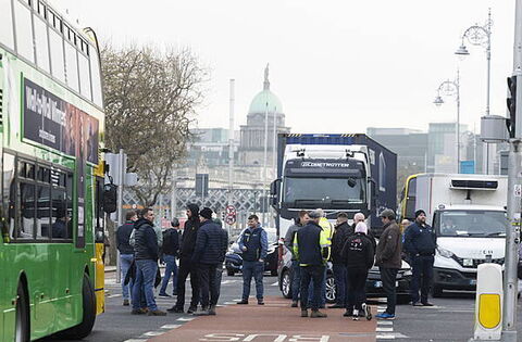 Gardaí have warned of possible road blocks to Dublin Airport and the Port Tunnel. Protestors have now blocked Fleet Street in Dublin, which was an access route.