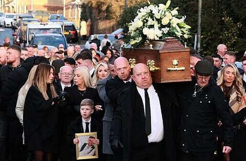 The father-of-two’s coffin was carried from the family home in the Lagmore area of west Belfast early on Saturday morning and taken onward for a service at nearby St Luke’s Church in Twinbrook.