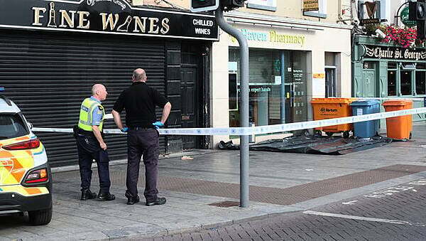 A section of footpath outside an off-licence and a pharmacy remained cordoned off by gardaí on Thursday morning.