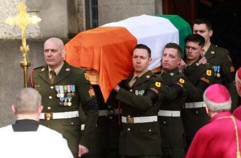 Full state funeral honours were accorded to Mr Bruton, with Irish soldiers carrying his coffin out of the church in Co Meath before it was taken on a gun carriage to the cemetery.