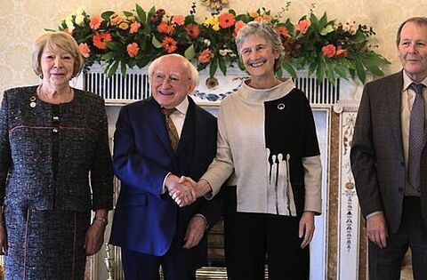 Mr Higgins and his wife Sabina greeted Ms Connolly and her husband with hugs and handshakes.