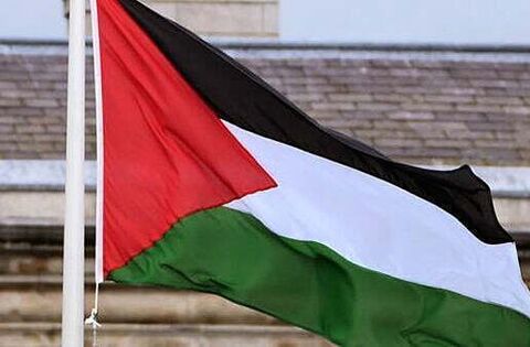 A Palestinian flag flying outside Leinster House with an Irish flag in the distance