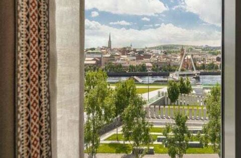 Having become acquainted with the historic sights, I get to see the city from a new angle by boat thanks to Foyle Adventures. Zooming along the river offers superb views, including of the country estate Boom Hall and the riverside walk, as well as passing under the Peace Bridge, giving another perspective on Ebrington from the water.