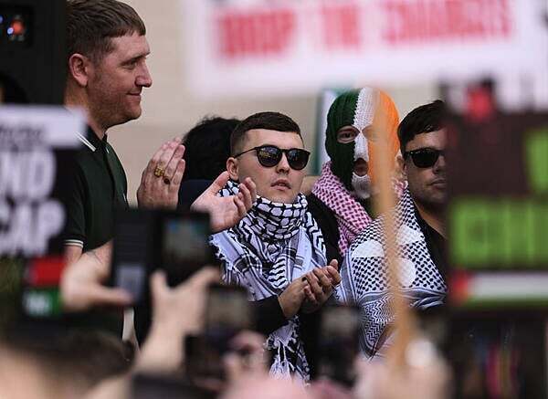 Outside court following the hearing, Ó hAnnaidh's bandmate, Mr Ó Cairealláin, led the huge crowds in chants of “Free Palestine”.