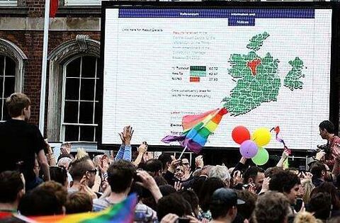 On May 22nd, 2015, the Irish electorate voted by 62 per cent in favour of same-sex marriage, on a high turnout of 61 per cent. All constituencies voted Yes except Roscommon-South Leitrim, which rejected the proposed amendment by a narrow margin.