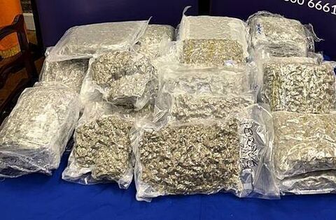 During the course of the search, 40 vacuum-sealed bags of cannabis herb, each weighing around 500g, with a combined total of 20kg and a street value of €400,000, subject to analysis, were seized.