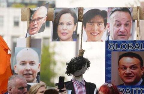 The scenes outside the Oireachtas, including a mock gallows that had pictures of senior Government figures attached to it, have prompted a review of security measures.