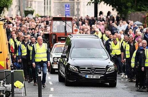 Mourners packed Holy Cross Church in the town on Saturday morning to pay their final respects to the 56-year-old and support his family.