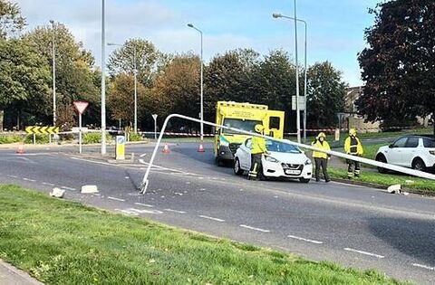 The incident occurred at around 4:15pm on Saturday on the Inner Ring Road at the Ursuline Court roundabout close to student apartments.