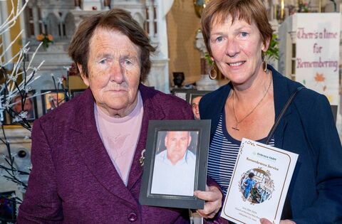 Mary Ellen Grehan and Moira Feehily from Roscommon remembering Stephen Grehan at the Embrace FARM, Remembrance Service in the Church of the Most Holy Rosary, Abbeyleix. Pic. Alf Harvey