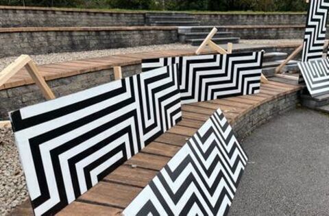 Each commission was different : ‘Begin Again’ highlighting the resilience and strength of native plants through ceramic flowers; ‘In Light of Us’ ephemeral print work created with pigment made by grass from the park itself, enjoyed on the night and slowly fading with the outdoor light over the weekend; ‘Echo Zone’ striking geometric linework responding to the amphitheatre becoming an immersive, luminous experience by night; and ‘Threshold of Inspiration’ an interactive, poem sculpture inspired by 'imbas forosnai' (the gift of poetry / foresight) about receiving inspiration and lending voice to vision.