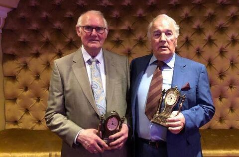 Barry Feely and PJ Keane on their induction to the Boyle GAA Hall of Fame in Kilronan Castle in January 2023.