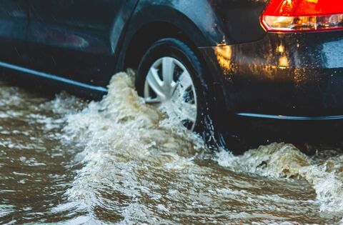 Car caught in floodwater