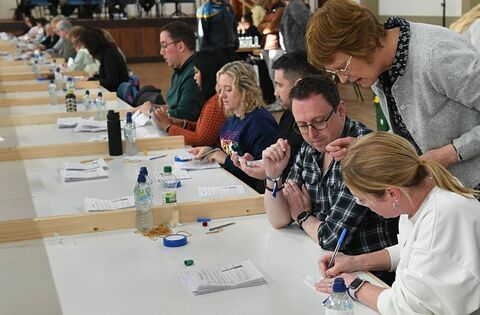 Checking the figures at the count centre in Roscommon. Pic: Gerard O'Loughlin
