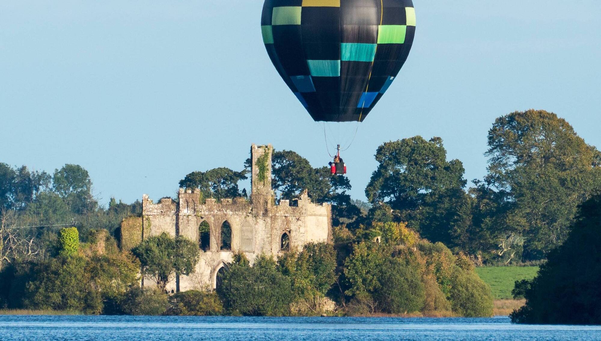 Bird's eye view of Castle Island on Lough Key during the recent ballooning championships. Pic: Gerry Faughnan