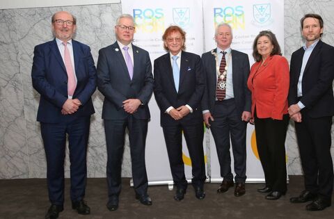 Sean Mulryan was warmly welcomed by the members of Roscommon County Council as a presentation of the plan for Athlone to develop as a new, sustainable city for the Midlands and West was outlined. Pictured shows council chief executive Shane Tiernan and Cathaoirleach Liam Callaghan with the Ballymore representatives and steering group members. Pic: Paul Molloy