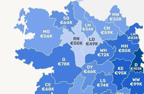 While Dublin and Wicklow require near or above €100,000 salaries to purchase a first-time-buyer home, Roscommon leads the list of more affordable counties, followed by Longford and Donegal.