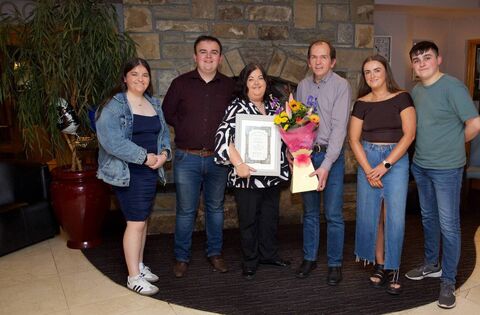Ann Gormley, Elphin pictured with her family at her retirement party - Emma, Cathal, Ann, Tommy, Rachel, and Shane.