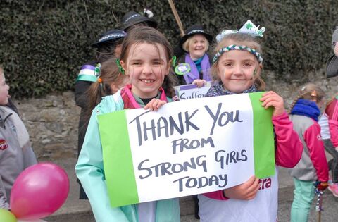 Sarah Jane Simon and Lauren Gilligan taking part in the Boyle St. Patrick's Day Parade last year. Pic. Enda Regan